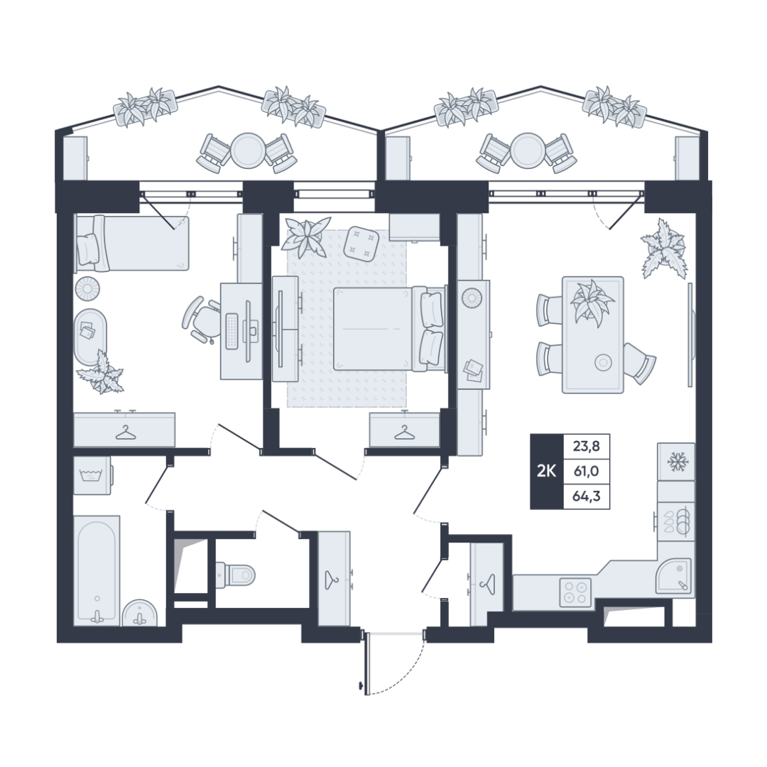Для тех, кто ценит свое личное пространство проектом предусмотрены варианты планировок квартир с «мастер спальней». Первые этажи со стороны улицы рассчитаны для торгово-офисных помещений. Они подойдут для размещения магазина, цветочной лавки, аптеки, пекарни, кафе и других полезных сервисов для жителей. Рядом с зоной ритейла (торг.помещений) мы разместили гостевые парковки и предусмотрели зоны разгрузки, не мешающие жителям. Технический этаж оснащен кладовыми.