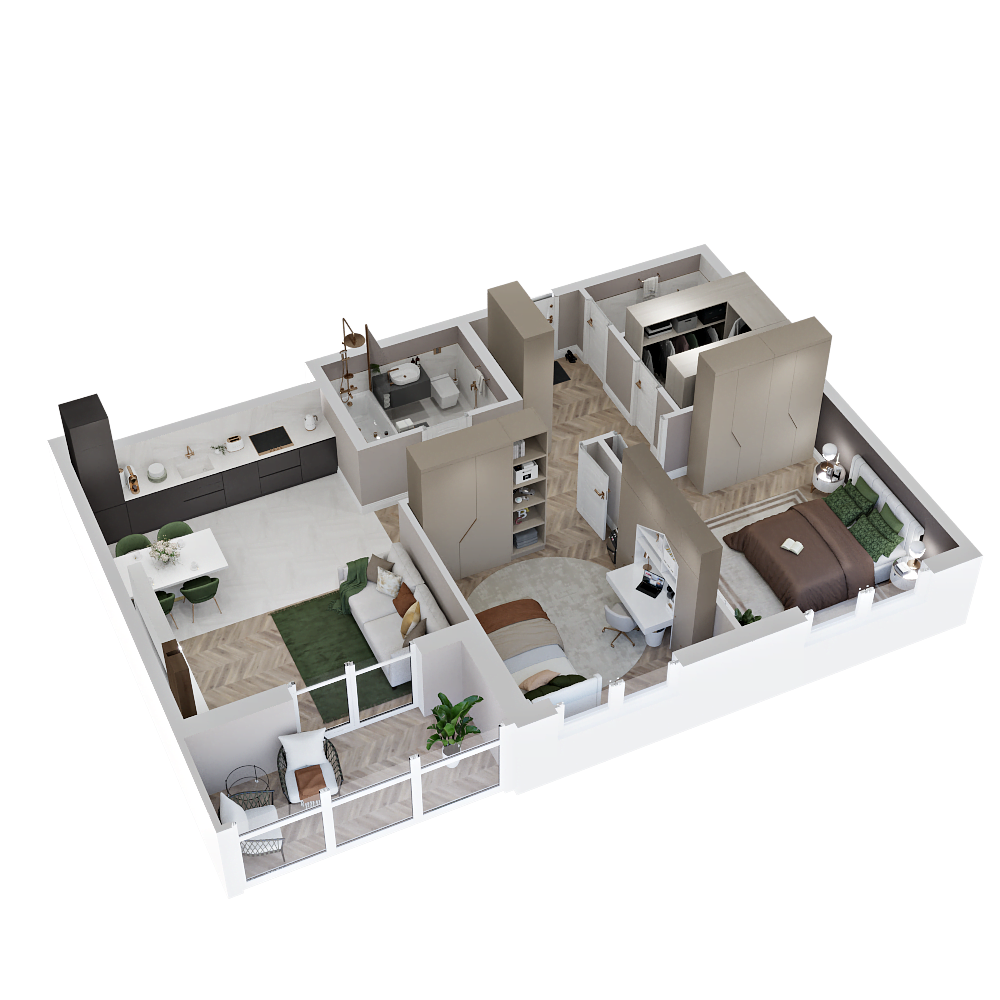 Для тех, кто ценит свое личное пространство проектом предусмотрены варианты планировок квартир с «мастер спальней». Первые этажи со стороны улицы рассчитаны для торгово-офисных помещений. Они подойдут для размещения магазина, цветочной лавки, аптеки, пекарни, кафе и других полезных сервисов для жителей. Рядом с зоной ритейла (торг.помещений) мы разместили гостевые парковки и предусмотрели зоны разгрузки, не мешающие жителям. Технический этаж оснащен кладовыми.